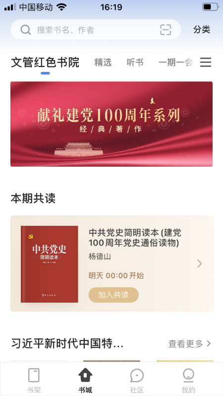 “文管红色书院”数字图书馆设置“建党100周年系列经典著作”“本期共读”“习近平新时代中国特色社会主义理论体系”“党员学习”“党政学习·党史”“红色经典有声”“文化自信”“文化产业”“广播电视”“艺术相关”等二十余个栏目板块。数字图书馆为学院师生提供了丰富的移动阅读资源,其中不仅有海量的党史、党建书籍和党的创新理论书籍,还包括大量文化产业相关的专业理论和文史哲经典书目。大家可以通过文字阅读、有声阅读等方式学习红色经典。此外,数字图书馆还采取阅读赠送礼卡的方式,创建个性化的独立阅读空间。