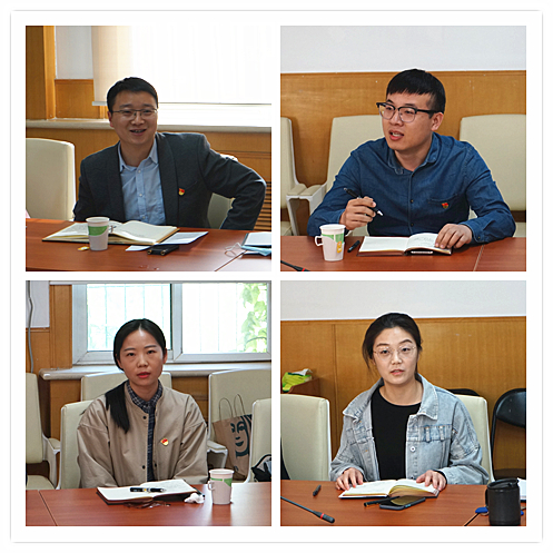 党委巡察工作办公室王飞可,马克思主义学院青年党员教师杨洋、李威颖,学院研究生入党积极分子沈子茹分别就前期开展党史学习和此次参与联读联学的心得感受进行了交流。