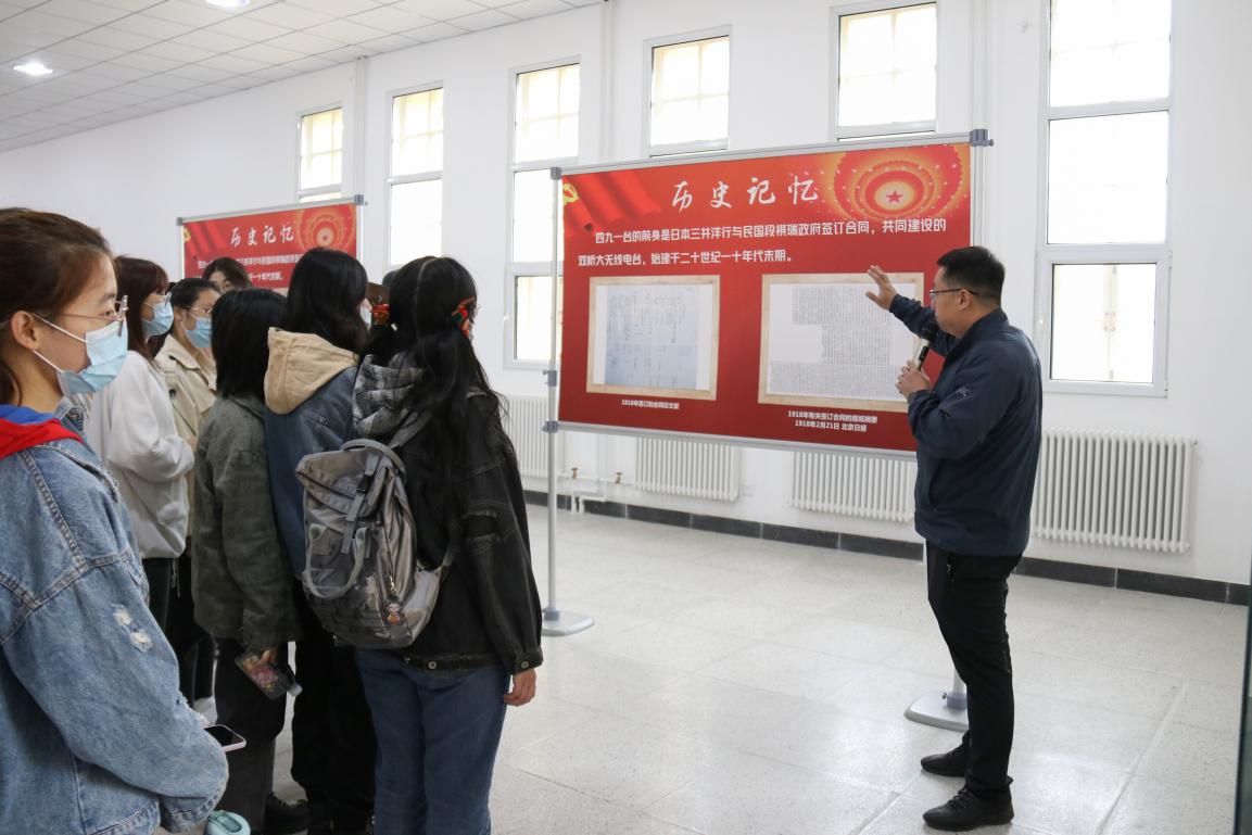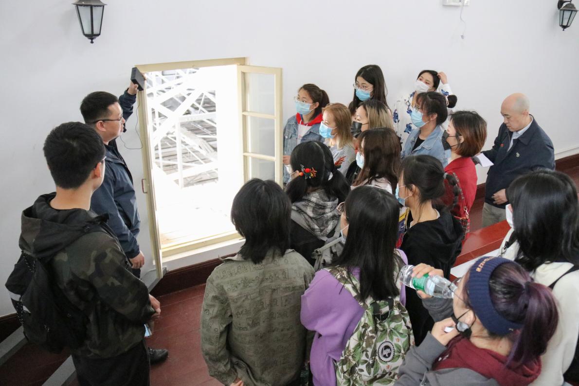 贾磊副台长首先带领师生参观了四九一台全貌,并详细介绍了四九一台基本布局情况,中短波发射塔的分布、类型、发射体系等。进入展厅,一件件珍贵的历史文物:橘黄色的资料书,锈迹斑斑的通讯器材……诉说着四九一台在历史进程中的重要角色。