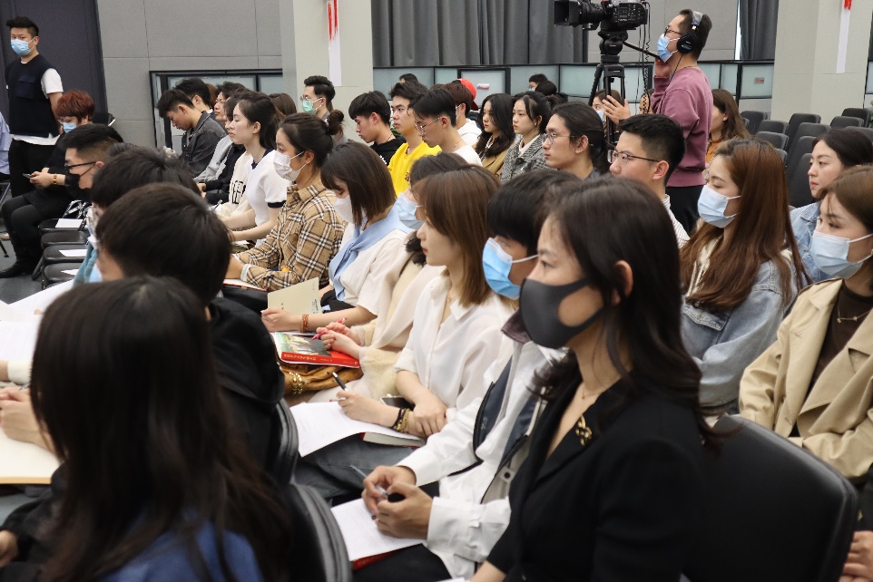 为了真实、准确、生动地再现这本有声书的精神实质,“学习强国”为播音主持艺术学院的师生专门组织了一场有声语言艺术专题讲座,“学习强国”总编辑刘汉俊与大学生座谈如何志存高远、养成终身学习习惯的路径和方法。讲座还邀请中央广播电视总台播音指导虹云、陆洋为师生们传授演播技巧,会后,专家们来到学校为师生们进行了现场示范演播。