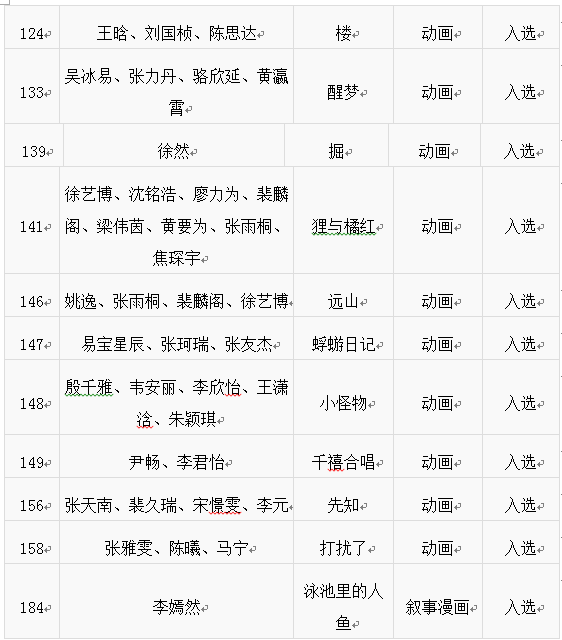 附:我校入选作品名单: