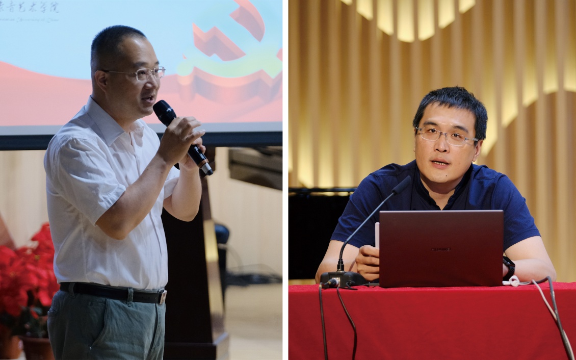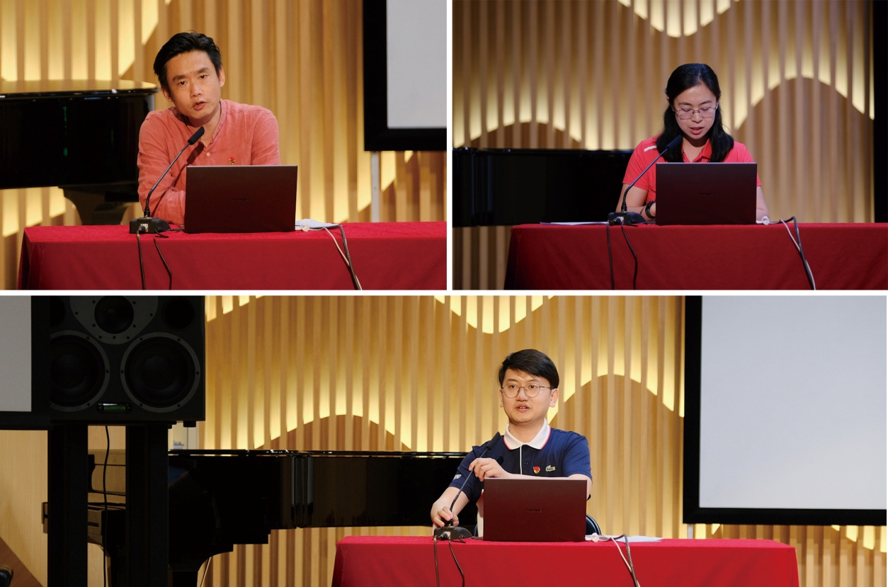 三位青年教师结合党史学习经历,汇报交流了学习成果与感悟。汪静渊老师从自身教学实践出发,阐释了传统音乐在中华优秀传统文化中的重要意义,分享了自己在中华民族伟大复兴战略全局中如何培养传统音乐人才方面的思考。刘晓飞老师以首开“双师思政课”为例,介绍了“1+1+N”双师思政课的教学模式,交流了教学思考与教学感悟,表示要通过党史学习教育,学思悟行、凝心铸魂,做好青年学生成长的引路人。吉也老师在汇报交流中表示,要把立德树人作为工作的出发点和落脚点,注重理论知识与实际工作相结合,发挥学科专业特色,创新思政工作方式,以作品思政、活动思政为抓手,把对学生的信仰引领与价值观塑造融合在校园文化建设中,以文化人,以文育人。