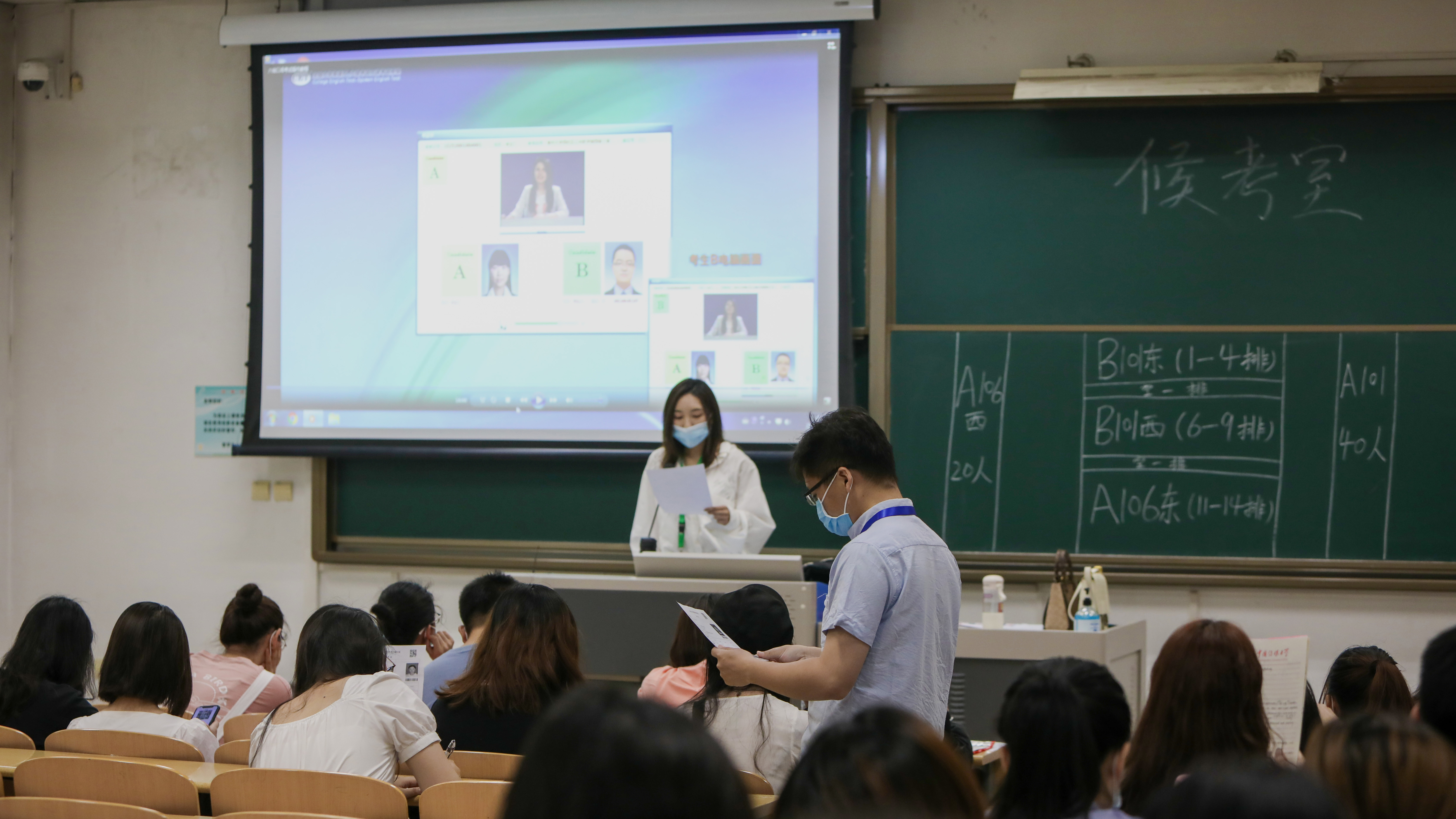 考生于候考室候考并观看测试视频