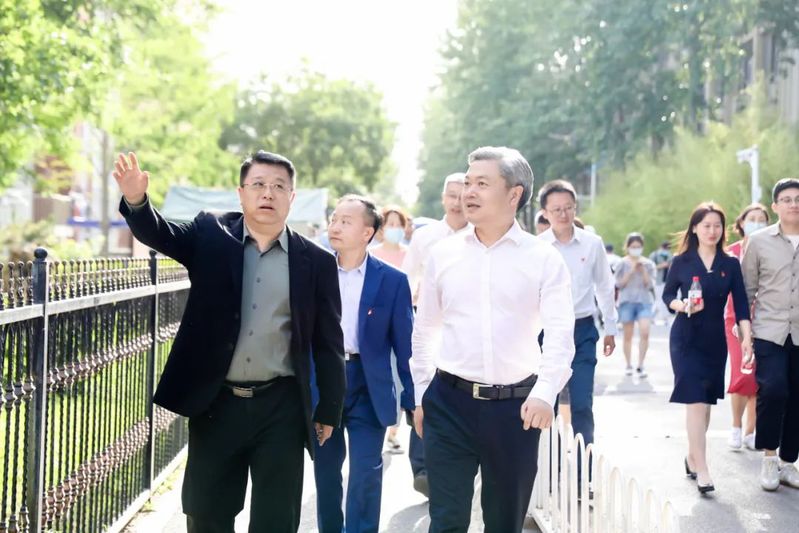 走出学校东门,来到新修建的传媒东路,王灏书记仔细查看道路建设情况,认真听取道路设施完善、环境整治情况的汇报,对加强校园周边环境整治、提升学校师生、周边居民的获得感、幸福感、安全感提出要求。王灏书记指出,传媒大学东路北接朝阳路、南达京通快速路辅路,它的修通对于打通封堵多年的断头路,完善城市道路微循环,便于周边高校加强校园安全管理,具有十分重大的意义,传媒东路的建成通车,必将为周边师生、居民提供更为便捷的交通通道,也必将为周边学校校园环境提升带来重大机遇。