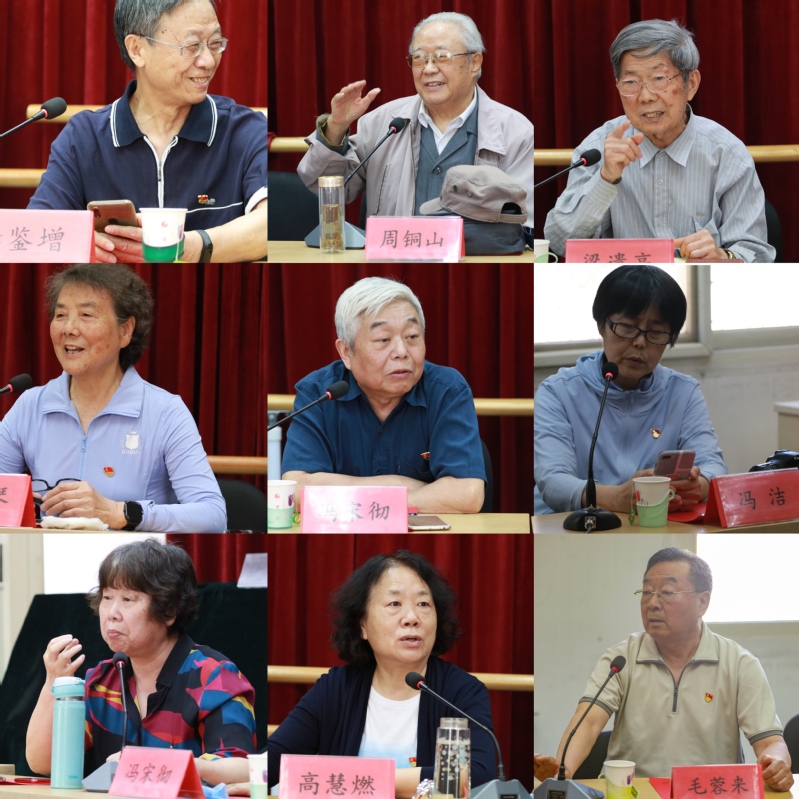 李鉴增教授谈了自己的求学经历和研究生培养感悟,为毕生奉献的研究生教育事业作联一副:“对工作比上而知不足,继续拼搏;于生活比下方觉有余,自得其乐。”周铜山教授谈到自己是一个从农村走出来的少年娃,一切都是共产党给予的,表示要继承先烈的事业,继续奋斗。梁遗高教授向大家展示了珍藏多年的当年在人民大会堂聆听周恩来总理演讲的入场券,受总理教诲,他的一生服从组织安排,全心全意、忠心耿耿为人民服务。沈琴教授回忆起自己在戈壁滩罗布泊从事核试验的青春燃情岁月,再现了一个共产党员“一不怕苦、二不怕死”的精神面貌,她感激党对自己的培养和信任,表示要为党的事业奋斗终生。冯宋彻教授深刻剖析了自己的入党初心,从家庭、社会、个人的角度分析了入党的自我动因,历史细节和政治理论并举,既有深度又有高度。离退休人员党委委员冯洁讲述了抗日战争时期惊心动魄的真实故事,警示大家红色政权、胜利果实和太平盛世来之不易,要珍惜好时光好日子。关工委副主任兼秘书长张桂兰从自己的学生工作经验出发,谈到年轻人要坚定理想信念,能力素养和政治素养要符合党的要求。离退休人员党委委员高慧燃谈到,越是在和平年代越是要坚持党性,坚定信念。离退休人员党委副书记毛蓉来寄语青年学子,“从我做起、从现在做起,牢记为人民服务的党的宗旨。”
