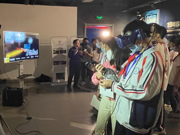 虚拟互动体验环节结束后,来自传媒附中初一六班的付锦恒同学在参观感受中写道:“似乎马上脚底下的桥就断裂了,枪林弹雨,战火纷飞,明知要战死沙场,但我身旁的战友依旧一往直前、势如破竹,我似乎已然穿越至那个时期。那战场上的瞬息万变,那战场上的烟火味,那战场上的苦累,与我们如今安静地享受学习生活形成了强烈的反差。这也许就印证了那一句‘哪有什么岁月静好,不过是有人替你负重前行罢了’吧。这种大无畏精神和强烈的爱国情感属实令我震撼无比。”