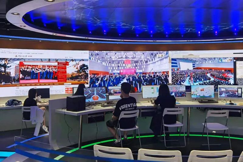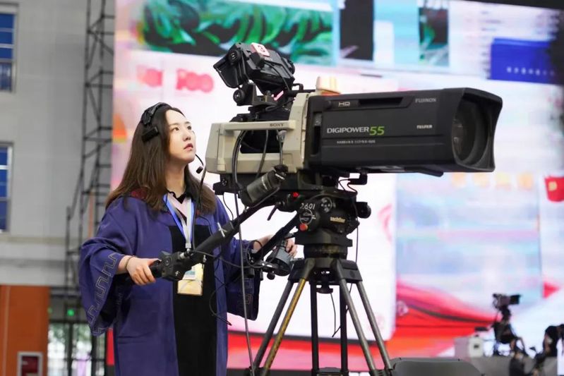 今年的毕业典礼是一堂实践思政、作品思政大课。毕业典礼的策划、设计、导演、摄像、直播、宣推等全部工作均由在校师生承担,是我校师生在媒体融合领域专业素养和敬业精神的一次集中检验。