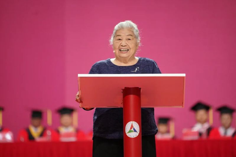 84岁高龄、61年党龄、50年教龄的朱羽君教授作为教师代表发言。她通过讲述自己的青春岁月、从教经历,反映时代发生的巨变、传媒高等教育的裂变以及学校的跨越式发展,表达一个老教师立德树人、矢志教学的初衷情怀,叮嘱毕业生们要始终牢记“立德、敬业、博学、竞先”的校训,留住对真实的叩问、对实践的执著与对专业的信仰。