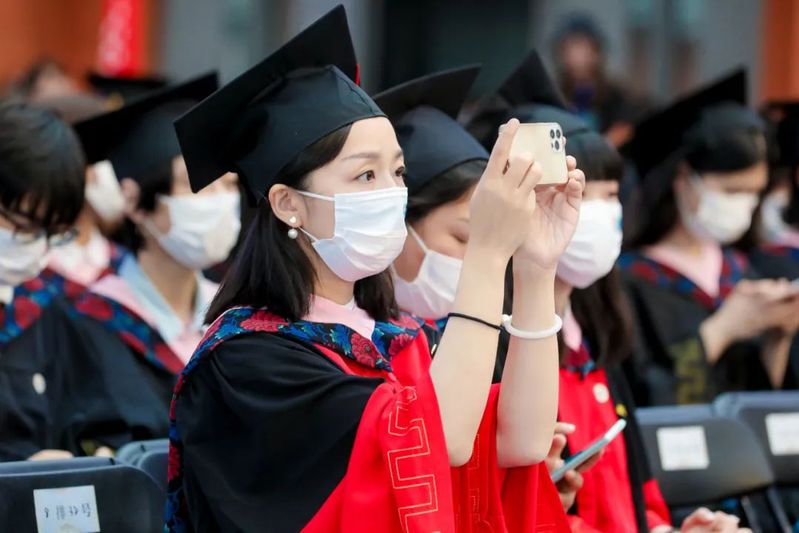 全体校领导,校学位评定委员会委员,2021届毕业研究生所属学部、学院领导为获得硕士学位、学士学位的毕业生拨穗、颁发学位证书并合影留念。