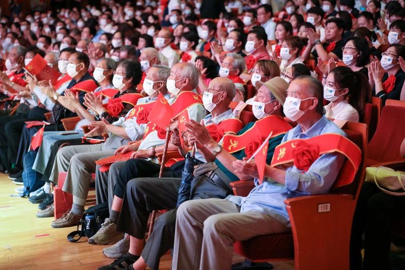 廖书记深情地向坐在台下获颁“光荣在党50年”奖章的老党员们致敬,表达对学校老一辈创业者们的崇高敬意。廖书记由衷地表示,正是因为老同志、老党员们对党忠诚、为校分忧,迎难而上、艰苦奋斗,才有了今天的美好中传。新时代中传人的使命和责任就是用传媒的力量守护好人的价值,用“忠诚、自信、包容、竞先”的中传文化基因生成和绽放信仰之光,把中传人的爱国情、强国志融入血脉、刻入骨髓、铸入灵魂,培养党和国家所需、能够应对未来媒体挑战、驰骋于国际舞台的卓越传媒人才。