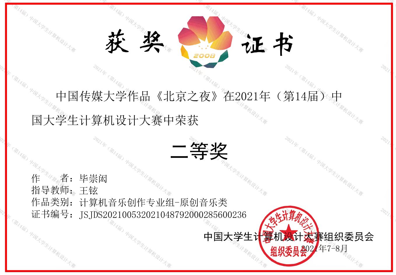 (通讯员 吉也)2021年(第14届)中国大学生计算机设计大赛(计算机音乐专业组)全国决赛于8月22日至25日举办,我校音乐与录音艺术学院选送的四部电子音乐作品获得原创音乐类一等奖、二等奖,原创歌曲组一等奖、二等奖的佳绩。这是我校电子音乐团队在该项赛事上连续第11年获得一等奖。本次比赛根据不同组别共设三个一等奖,中国传媒大学占据两席,体现出我校在全国应用类电子音乐教学中的领先地位。