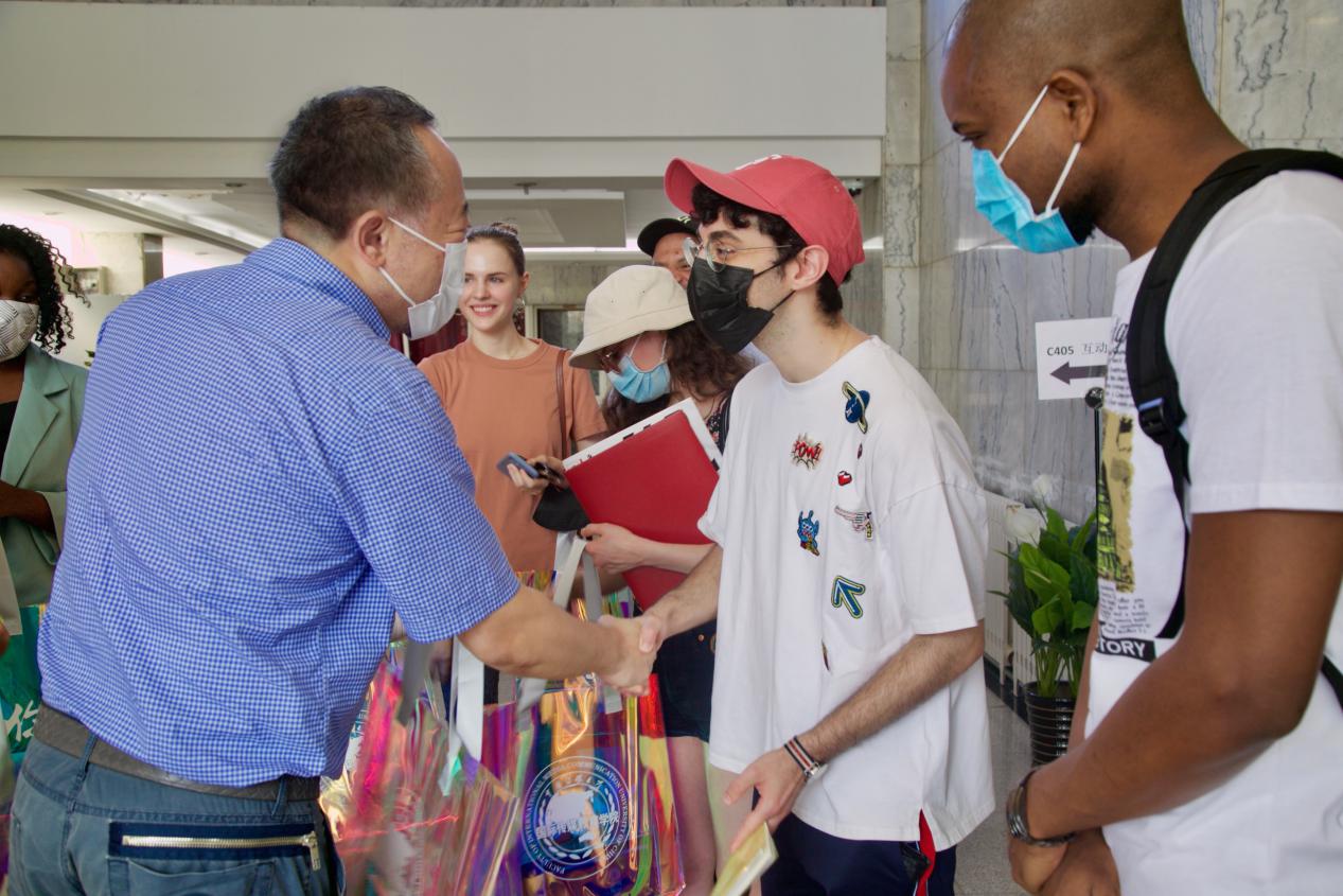 报到当天,段鹏副校长来到国际传媒教育学院(境外学生教育中心),了解迎新工作情况,并与国际学生新生亲切交谈。