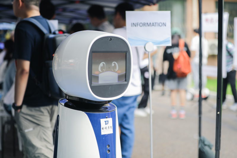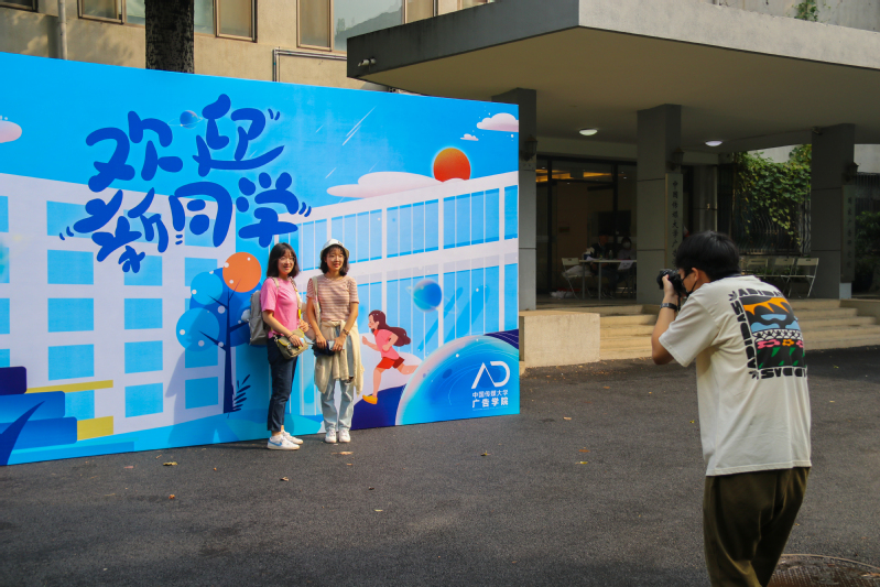 在学校东配楼,新闻学院“珍惜韶华,不负时代”的红色签名墙十分醒目;电视学院“电视熊”旁边吸引了不少新生打卡拍照,智能机器人小传上岗进行问题解答,帮助同学找到校内方位;学院设有专门的茶歇点,提供免费的小零食和共享雨伞等暖心服务。