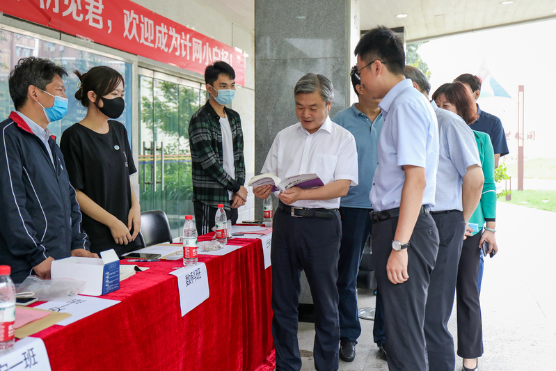 校领导十分关心迎新工作,党委书记、校长廖祥忠,党委副书记、纪委书记王达品,党委副书记李众,副校长刘守训、李新军、段鹏、王晖,校长助理杨懿等带领相关职能部门负责同志来到迎新现场,看望工作人员,了解新生报到情况。