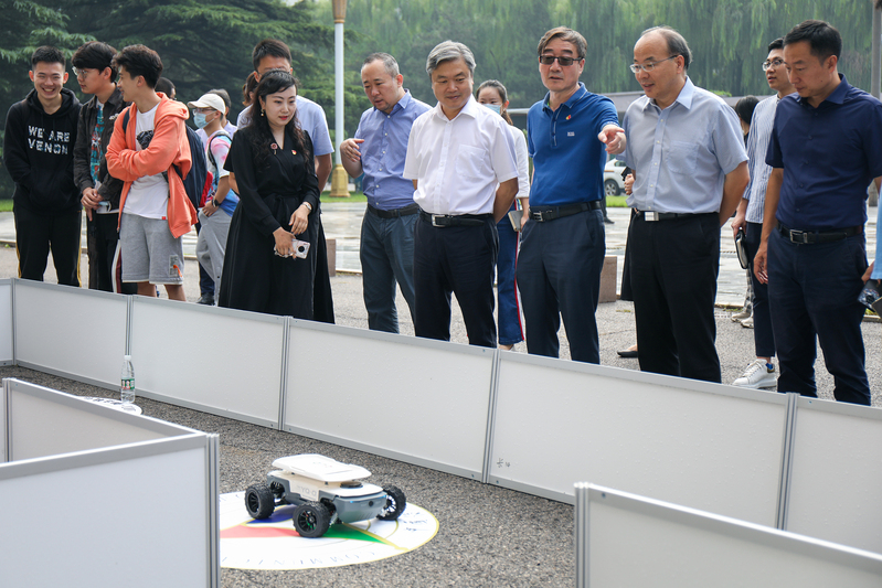 信息与通信工程学院展示了由大二和大三本科生参与设计的基于无人驾驶技术的智能小车,该智能小车充分体现了自动驾驶、计算机视觉、阿克曼运动控制、跨平台通信,以及人工智能等当今热点技术的应用和融合。通过现场智能车兴趣小组学生向新生浅显易懂地进行专业知识讲解,以及在所设计趣味场景中的应用展示,一方面激发出新生的专业学习热情,另一方面展示出信通学院“融合创新,与时俱进”的新工科培养目标。