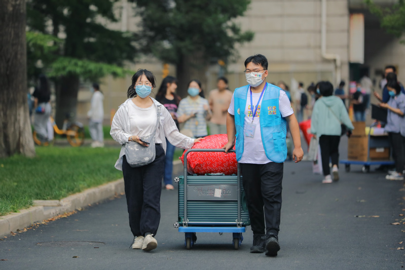 线上报到高效,线下报到同样流畅。250多名“蓝马甲”们分布在18个岗位,引导新生办理报到手续,协助搬运行李。新生在志愿者的帮助引导下,循着清晰的路标,来到所在学院迎新点、学生公寓等地,完成报到、公寓入住、信息采集核验等相关工作。