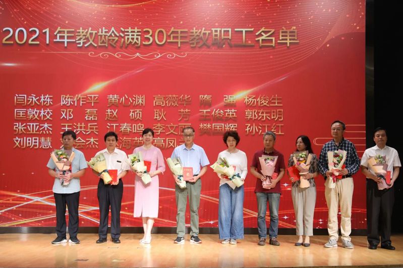 廖祥忠书记、校长为“教龄满30年教职工”颁奖