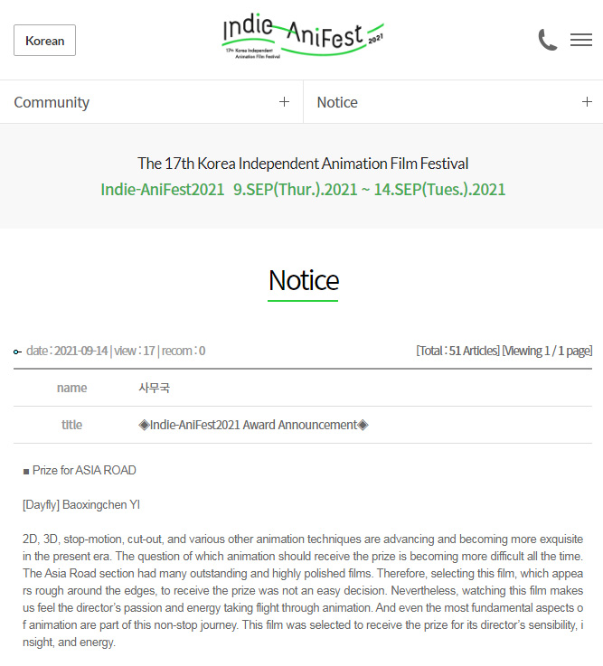 2021韩国独立动画电影节官网截图