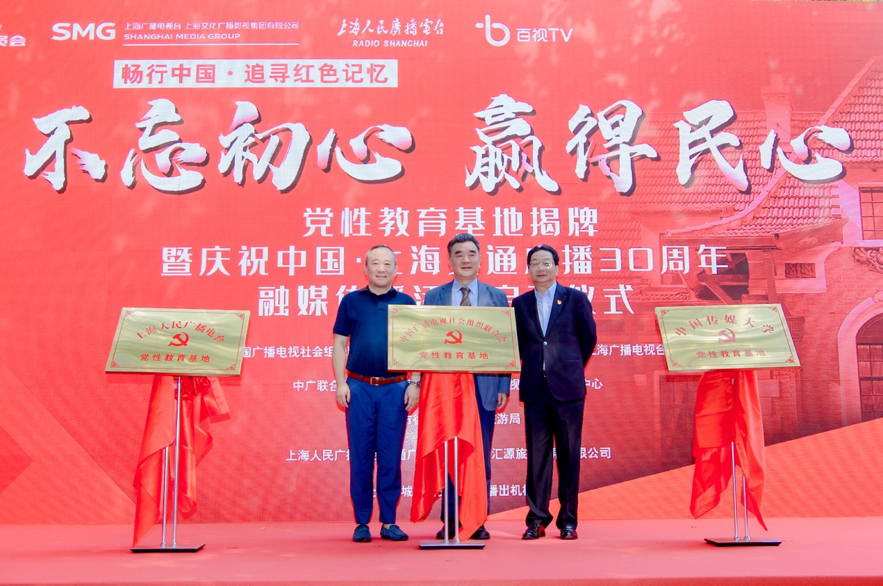 王求副会长,杨亮巡视员,段鹏副校长,王建军书记,潘力会长,赵懿部长等共同启动畅行中国•“追寻红色记忆”——“不忘初心,赢得民心”党性教育基地揭牌暨庆祝中国•上海交通广播30周年融媒传播活动。