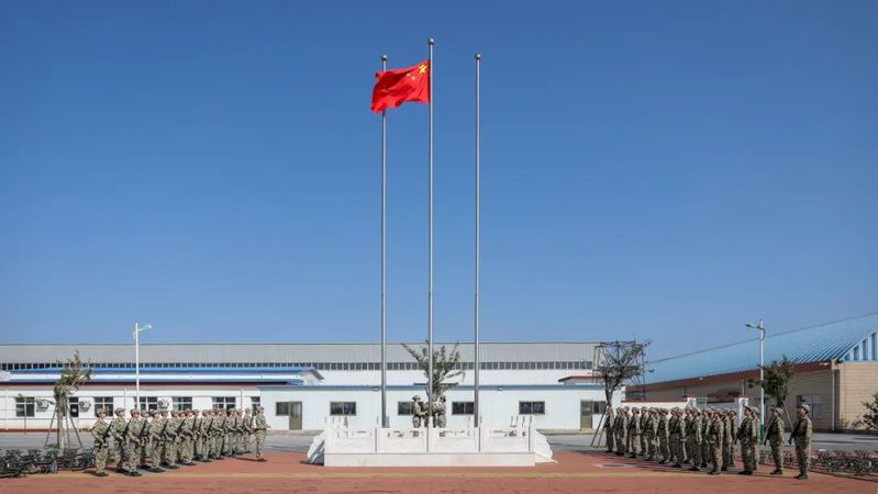伴随着庄严的国歌声,五星红旗在军训团国旗班的护卫下冉冉升起,结业典礼正式开始。