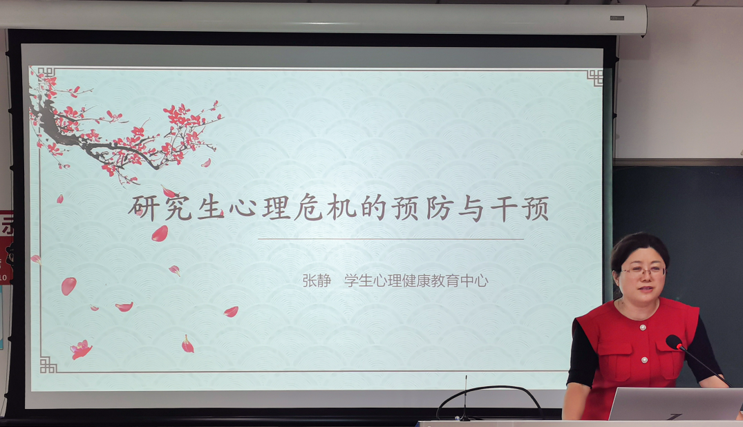 学生工作处心理健康教育中心负责人张静老师用自己工作中鲜活的典型案例,向新晋导师分享了研究生心理健康特点与沟通技巧,也给出了研究生心理危机的预防与干预方面的相关建议,提醒导师督促学生学业的同时也要注意学生的心理健康。