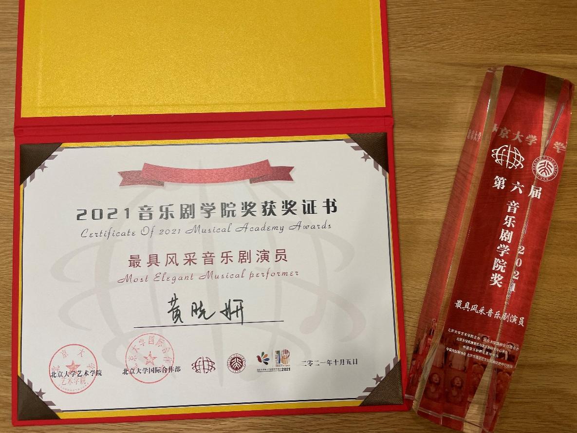 第六届“音乐剧学院奖”大赛报名人数近300位,共收到来自51所国内高校、13所国外高校及多家院团近200份参评作品,数量再创历史新高。我校黄晓妍同学选择了音乐剧《西贡小姐》的曲目《I’d Give My Life For You》参评。她的人物形象刻画生动,演唱极具张力,舞台演绎流畅且富有内涵。最终,凭借出色表演,黄晓妍同学获得现场评委专家的一致认可与好评,荣获“最具风采音乐剧演员奖”。