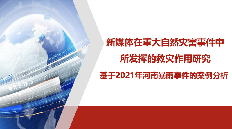 2021年10月,我校新媒体研究院全网发布《新媒体在重大自然灾害事件中所发挥的救灾作用研究》报告。报告基于2021年7月的河南暴雨事件进行案例分析,盘点新媒体在救灾中的亮点作用,研究新媒体技术在重大自然灾害事件中体现的社会价值。