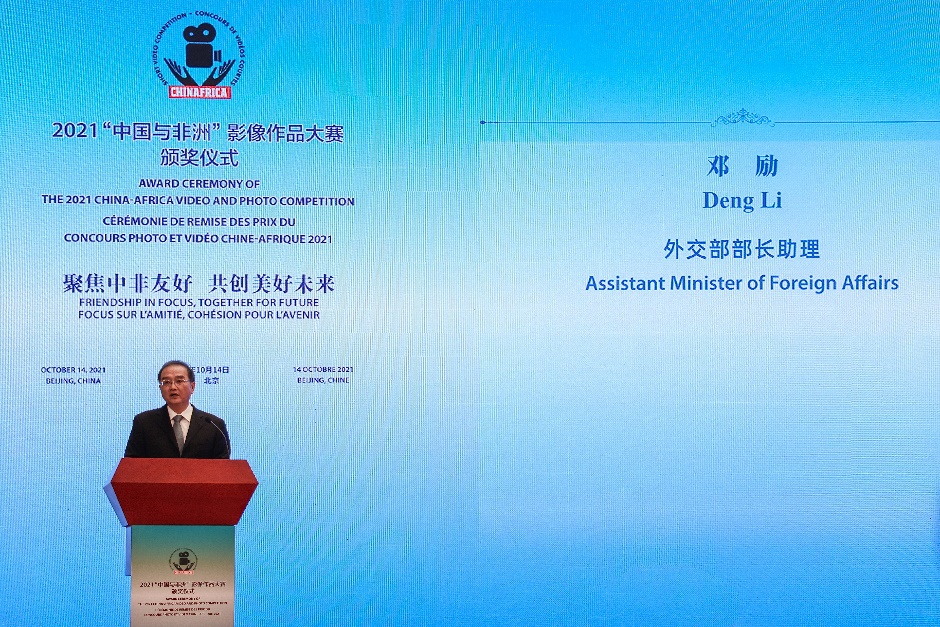 大赛颁奖典礼在外交办公大楼举行。外交部部长助理邓励、中国外文局副局长兼总编辑高岸明、塞内加尔驻华大使马马杜·恩迪亚耶等中非双方嘉宾出席了本次活动。