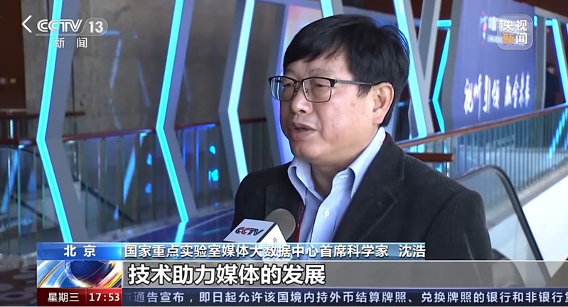 本次大会启动了“首届新视听媒体融合创新创意大赛”,大赛设置了内容创新、模式创新、技术创新三个赛道,旨在打造具有全国示范引领意义的媒体融合交流合作平台。我校国重实验室与中国社会科学院新闻与传播研究所、北京大学新闻与传播学院、清华大学新闻与传播学院、中国人民大学新闻学院等共同作为协办单位,深度参与了大赛的统筹与实施工作。新闻学院教授、国重实验室媒体大数据研究中心首席科学家沈浩,协同创新中心副主任、国重实验室互联网信息研究院副院长曹三省教授等为大赛提供了学术指导。沈浩教授还接受了中央广播电视总台等媒体的专访。