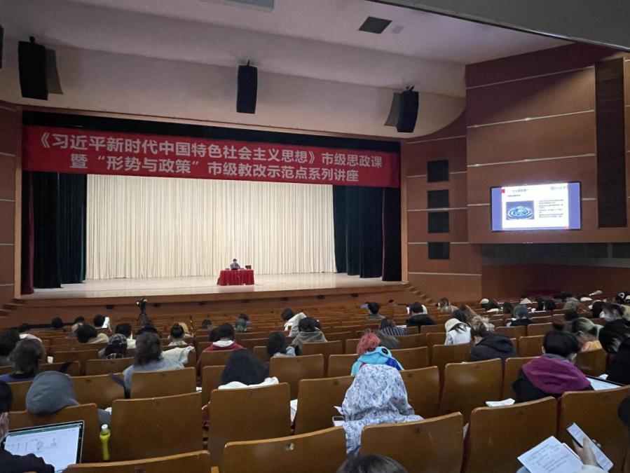 (通讯员 夏军秀)10月20日,中国人民大学国际关系学院崔守军教授应邀来到我校举办“气候变化与全球能源地缘政治转型”专题讲座。此次讲座是我校“习近平新时代中国特色社会主义思想”市级思政课暨2021年秋季学期“形势与政策”课“时政讲堂”系列讲座的第二讲,2020级播音与主持艺术、行政管理、文化产业管理、动画与数字媒体艺术等专业的近500名本科学生参加讲座。讲座由马克思主义学院武闽副教授主持。