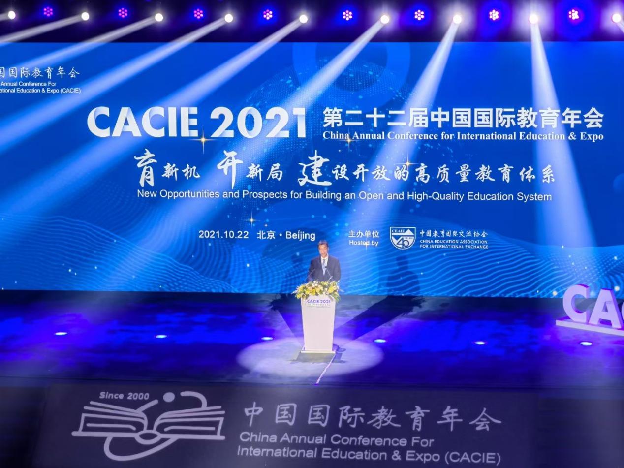 (通讯员 王晓芳)在教育部大力支持下,由中国教育国际交流协会举办的第二十二届中国国际教育年会于2021年10月21-24日在京盛大召开。大会云集中外政府主管部门领导、国际教育组织负责人、中外顶尖大学校长以及国内龙头企业领袖,共同为推动教育全球化向前发展明确方向、提振信心、凝聚力量。