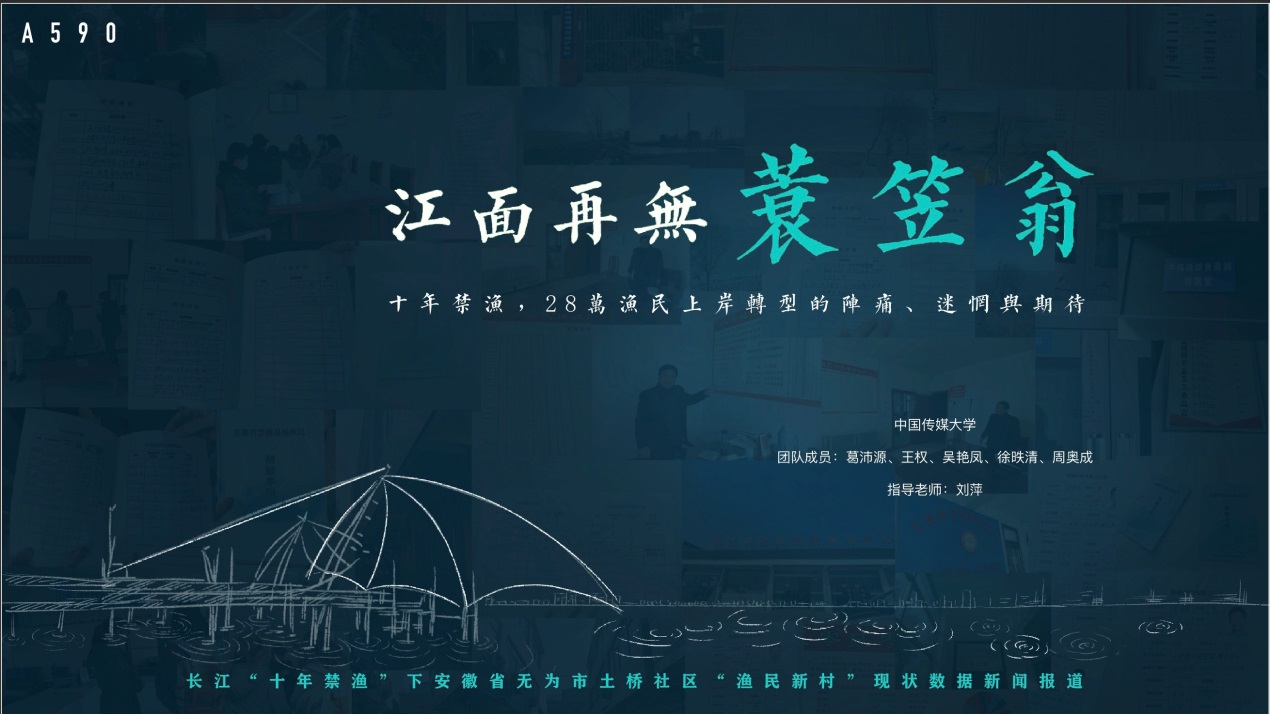 作品《江面再无蓑笠翁——长江“十年禁渔”下无为市土桥社区“渔民新村”现状》来源于新闻学院第十四届“子牛杯”社会调查征文大赛一等奖获奖作品《禁渔,上岸,未来?——长江“十年禁渔”下无为市土桥社区渔民生活现状调查》。在长江“十年禁渔”的政策背景下,作品聚焦基层渔民社区,通过渔民个案与渔村“大数据”结合,质化访谈与量化数据搭配,融合写实手绘元素和数字互动效果,展现上岸渔民的阵痛与迷惘、基层工作人员的决心以及对长江流域渔村未来的期待。