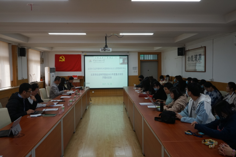 (通讯员 王锦刚)10月28日,北京市习近平新时代中国特色社会主义思想研究中心、北京市社会科学基金2021年度重点项目开题论证会在我校马克思主义学院召开。会议采取线上线下相结合的方式,校内领导、专家现场指导,校外领导和专家学者以线上视频直播方式参会指导。