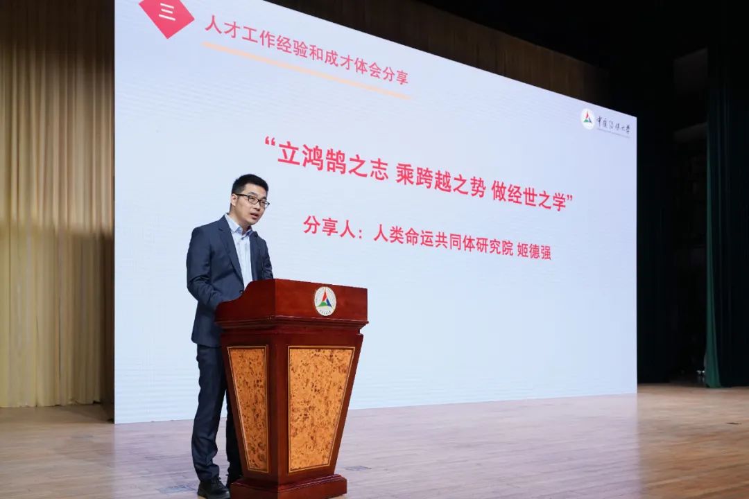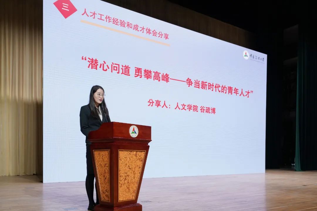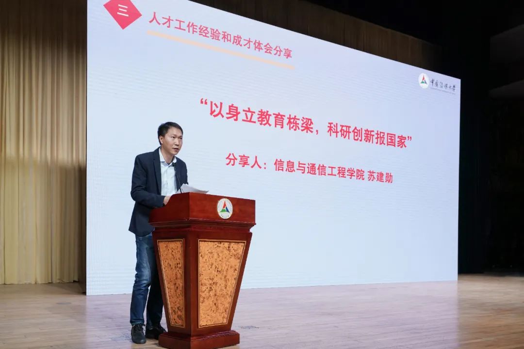首批青拔人才姬德强教授、首批青拔人才苏建勋教授,优秀师资博士后谷疏博博士作为人才代表分别发言,分享在学校党委的关心和关怀下,在学校青年人才工程项目的扶持下,立志成才、奋力拼搏的成长经历和经验感悟,表达不负学校厚望,砥砺奋进,取得更大成绩的信心和决心。