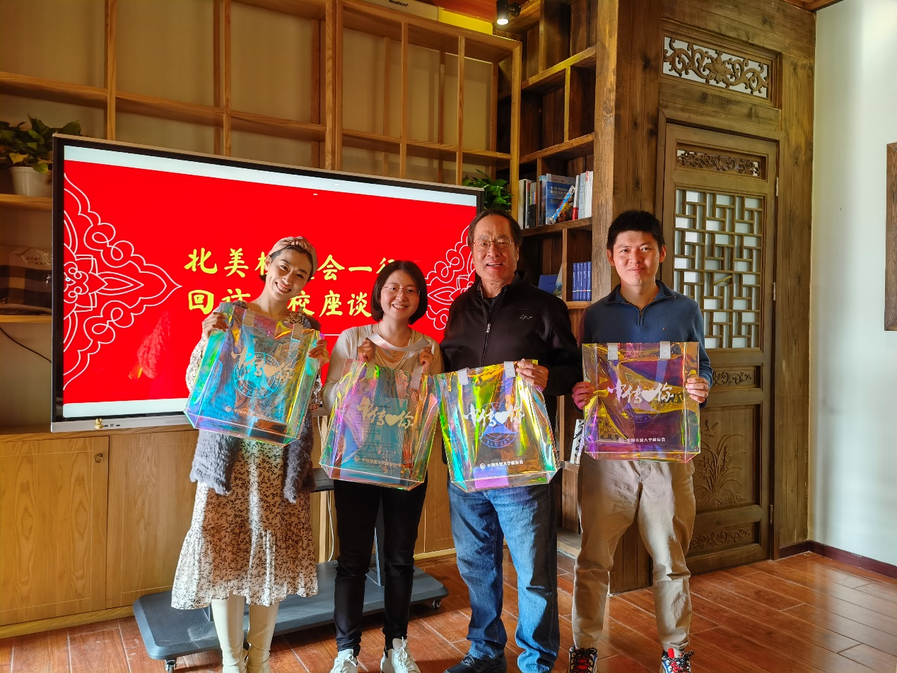 校友工作办公室副主任储钰琦介绍了近期校友工作相关情况。国内交流与合作处(校友工作办公室)赠送了学校文创产品。