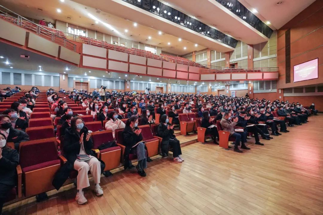 学校党委委员、纪委委员,全体中层干部,马克思主义学院领导班子及思政课教师代表,教师党支部书记、学生党支部书记代表,教授代表,国家高层次人才称号入选人员代表、青年拔尖人才和辅导员代表参加报告会。