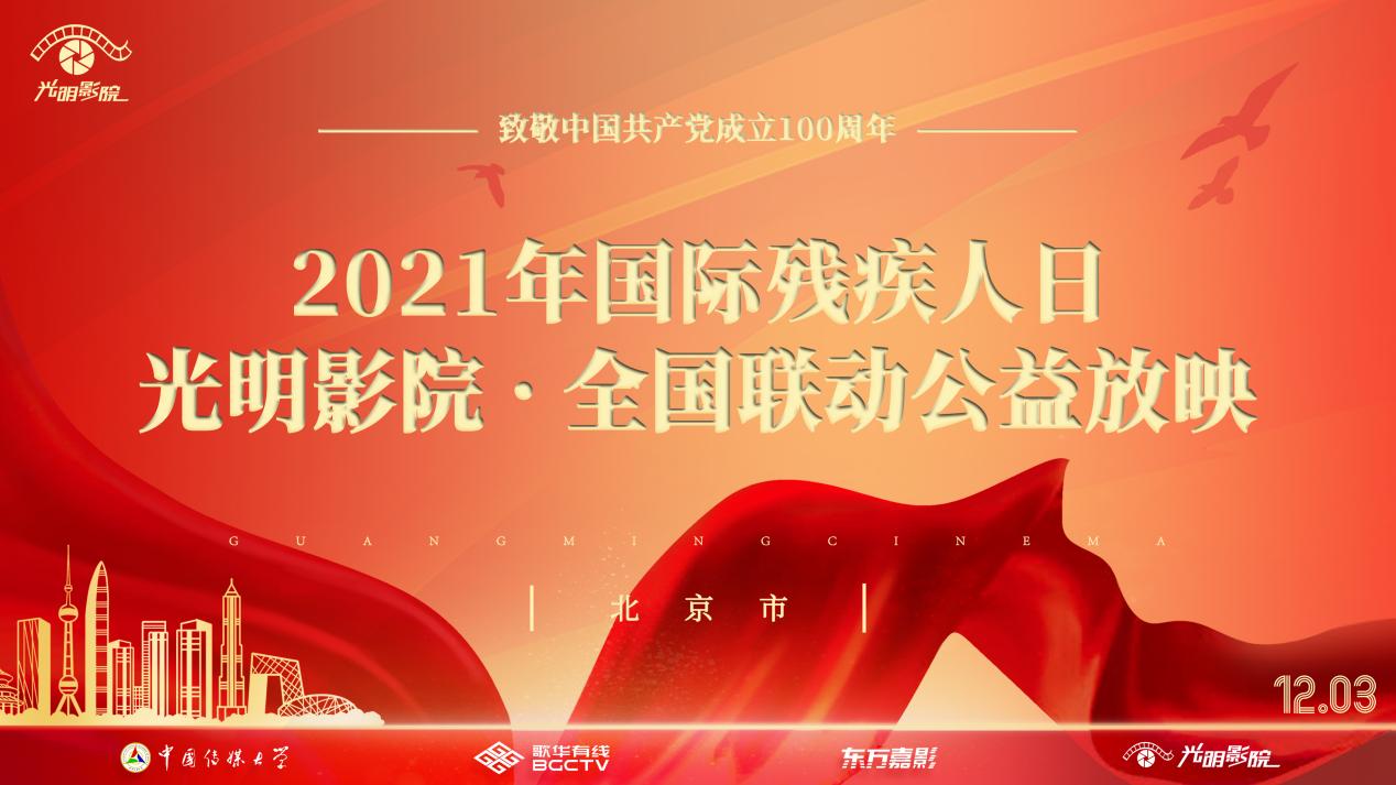 (通讯员 潘悦)2021年12月3日是第30个国际残疾人日,中国传媒大学“光明影院”公益项目举办“致敬中国共产党成立100周年”无障碍电影全国联动公益放映活动启动仪式。“光明影院”项目团队将制作完成的“百年百部”系列无障碍电影赠送给31个省(区、市)及澳门特别行政区的盲协、盲校、社区及图书馆,并邀请全国的盲人朋友共赏团队精心挑选和制作的无障碍电影,让视障朋友共享新时代的文化成果,共度自己的节日。