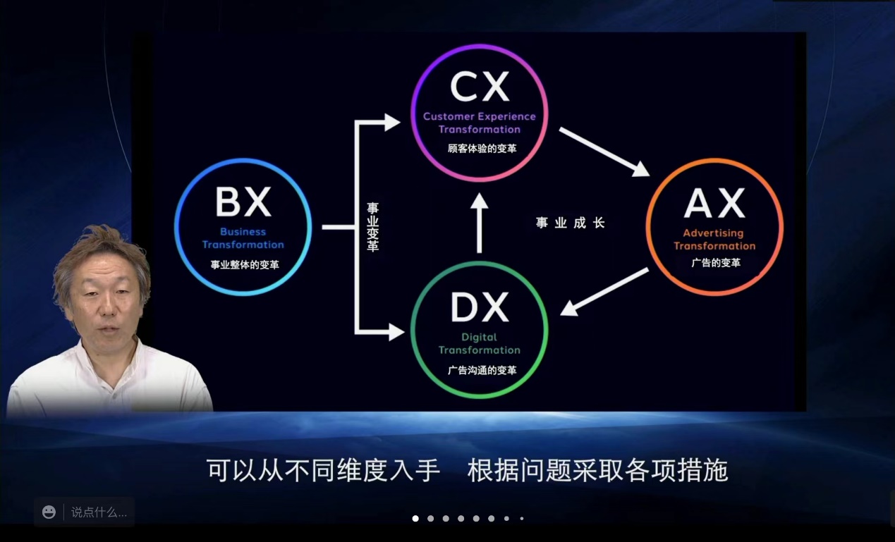 樋口景一执行董事以“TRANSFORMATION”为主题,基于电通视角解读创新的要义。他指出,行业潮流及新的竞争环境对广告营销提出了新要求,广告人要在发挥不同作用的同时具备实现这些作用的必要技能。他还从“广告转型、商务转型、客户体验转型、数字化转型”四方面介绍了电通的创新做法。