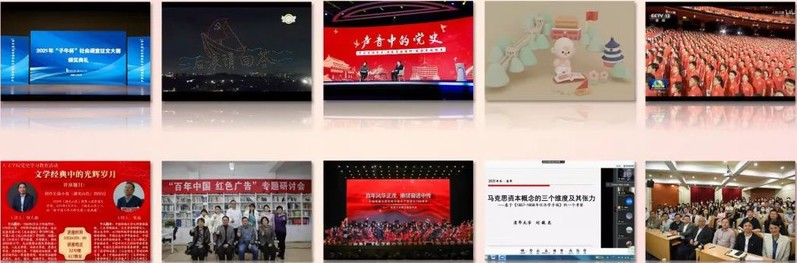 廖书记重点列举了学校充分依托并发挥传媒特色优势,打造推出的一批党史学习教育精品成果:“四个一百”系列融媒体作品,成为全国党史学习教育的一个特色标杆。600余名师生在建党百年庆祝活动中的优异表现,被怀进鹏部长称赞为“学校立德树人重要成果和优势特色的鲜明体现”。创作推出一批以党史为主题的精品视频,引爆网络。
