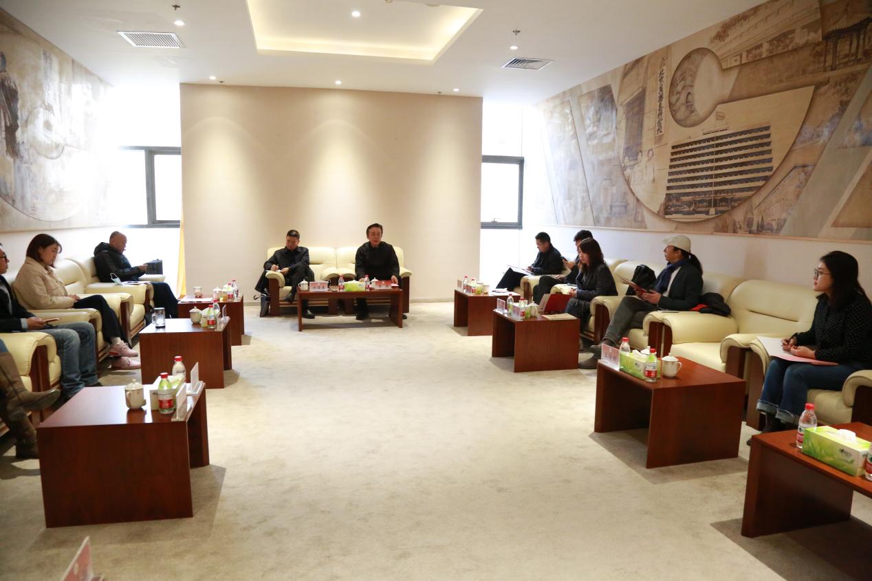 北京市文物局博物馆处处长白崇,北京博学新媒体与传播专委会执行主任委员曹静杰,校传媒博物馆艺术设计总监刘杨及各部门主任、项目负责人陪同考察并参加座谈。