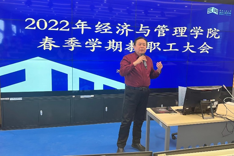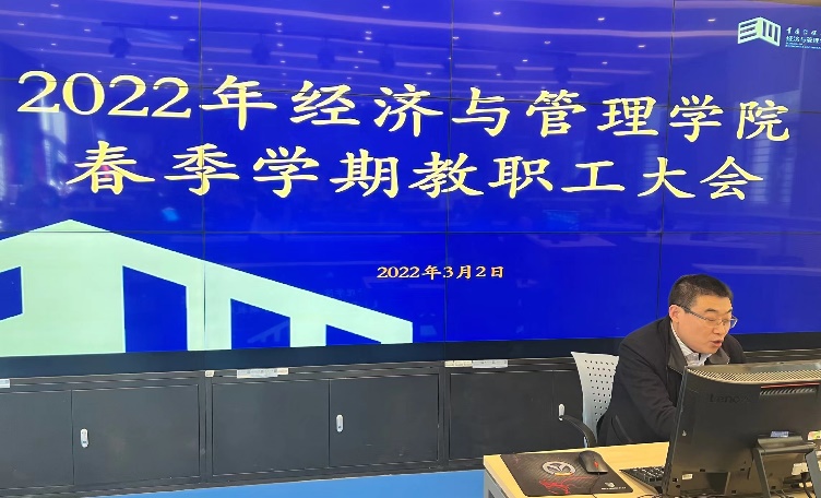 (通讯员 单诗瑶)为学习贯彻学校2022年春季工作会议精神,谋划和部署新学期工作,经济与管理学院于3月2日下午召开学院教职工大会,集体学习春季工作会议精神,明确2022年主要工作及落实方案。
