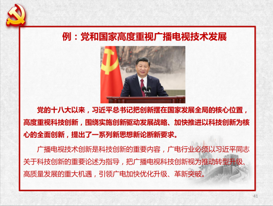 在讲授科学发展观时,李彬副教授举例了广播电视的“村村通”工程、“户户通”工程,通过这样的民心工程,用技术为人民群众造福。在讲授创新驱动发展战略,推进以科技创新为核心的全面创新时,李增瑞教授以广播电视技术方面的创新为例,深入讲解了科技创新对提高社会生产力、提升国际竞争力、增强综合国力、保障国家安全的战略意义。