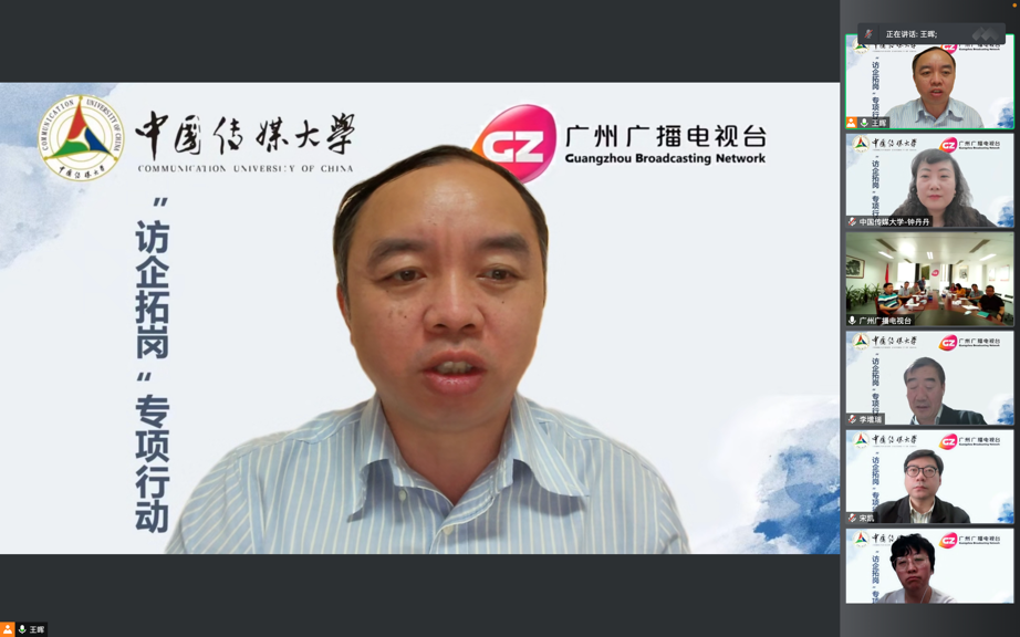 王晖副校长介绍了学校的基本情况和开展“访企拓岗”专项行动的重要意义。王晖副校长表示,中国传媒大学一直非常重视与行业的合作,近年来与广州广播电视台互动频繁、接触深入,希望通过本次校台交流为毕业生挖掘更多岗位资源,开拓就业渠道和就业岗位,同时深度了解用人单位对毕业生知识、能力和素质的要求,从而不断增强学校人才培养的针对性和适应性。