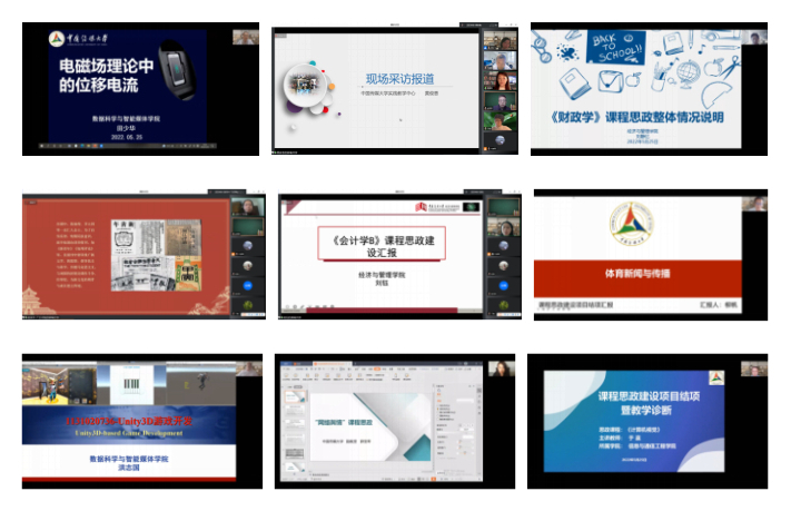 本次教学研讨包括教师说课、教学展示、专家点评等环节。播音主持创作基础、体育新闻与传播、人像摄影、葡萄牙语笔译、大学物理、财政学、大学体育等18门2021度校级课程思政建设项目的任课教师逐一进行课程建设汇报,阐述课程思政元素与知识点的对应关系、课程思政教学开展情况以及取得的效果,并选取部分课程章节作了授课展示。在每门课程的汇报后,评审专家逐一点评了课程思政目标、教学设计、教学方法、现场表现等,并提出改进建议。