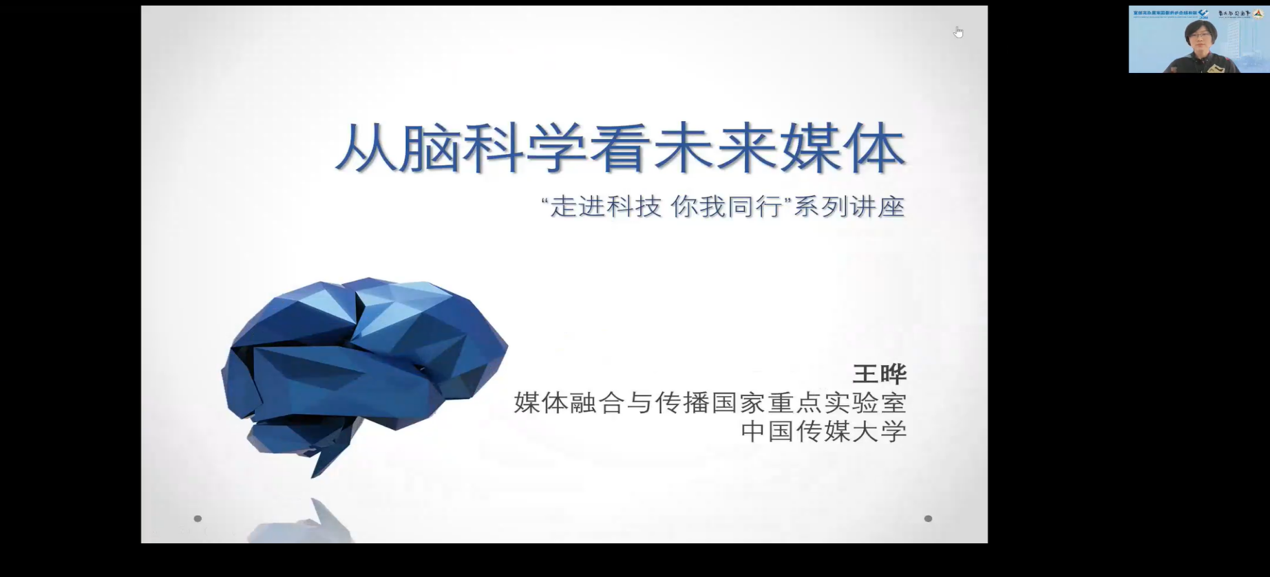 主题讲座“从脑科学看未来媒体”由国重实验室高级研究员王晔主讲,围绕信息感知、信息认知和未来媒体三个方面展开。她从“大脑如何接收媒体信息”出发,针对大脑的结构和功能,讲解了大脑对媒体信息的层级化加工方式。通过讲解“记忆存储在哪里”这一问题,王晔研究员讲解了海马体和概念细胞在记忆存储中的重要作用,和大家一起探讨“什么样的媒体内容更容易被人记住”。此外,王晔研究员还介绍了脑机接口和光遗传学技术,并围绕现有传媒方式能否得到突破等问题畅谈未来媒体相关内容。