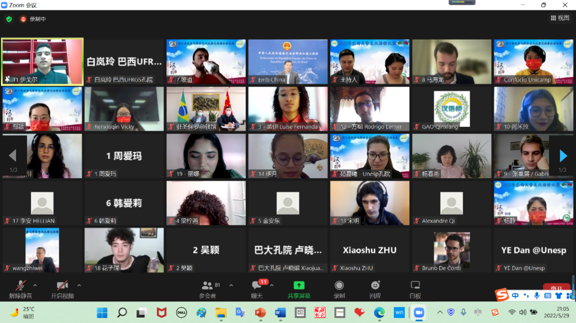 本次大赛由中国驻巴西大使馆主办,圣保罗坎皮纳斯州立大学孔子学院承办,巴西各孔子学院、孔子课堂选送的19位优秀选手参加了此次赛事。