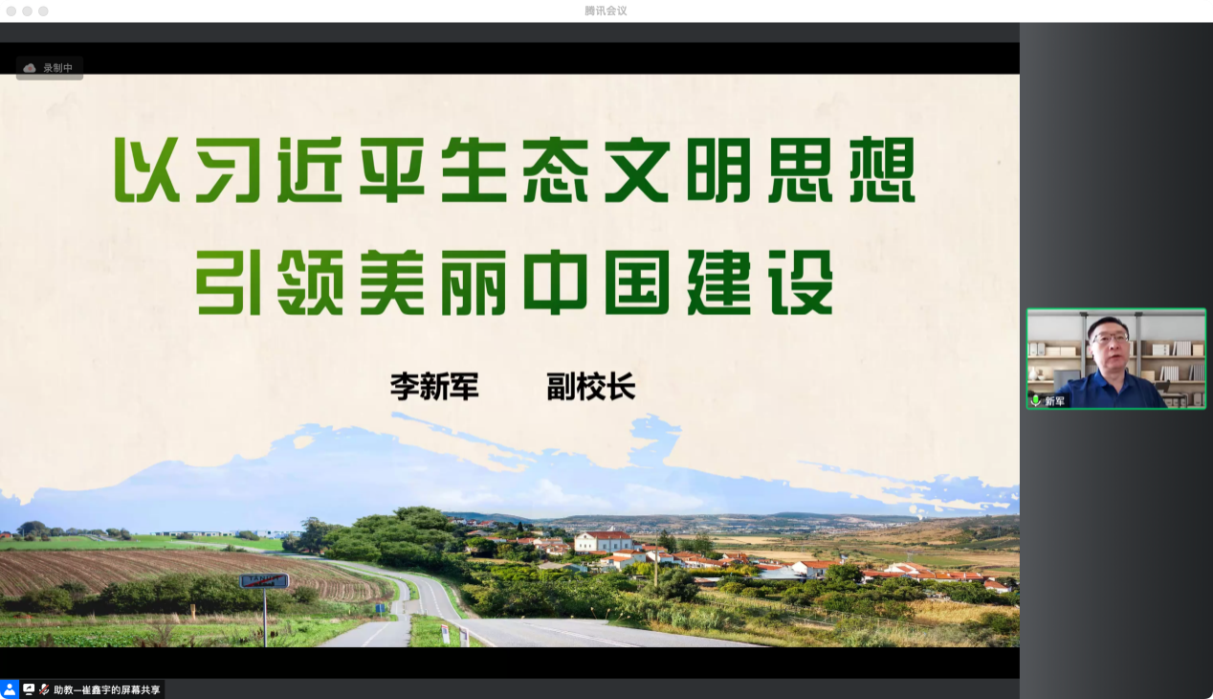 (通讯员 崔鑫宇 刘孟乔)5月25日,李新军副校长走进本科生《毛泽东思想和中国特色社会主义理论体系概论》课堂,给同学们讲授了题为“以习近平生态文明思想引领美丽中国建设”的云端思政课。