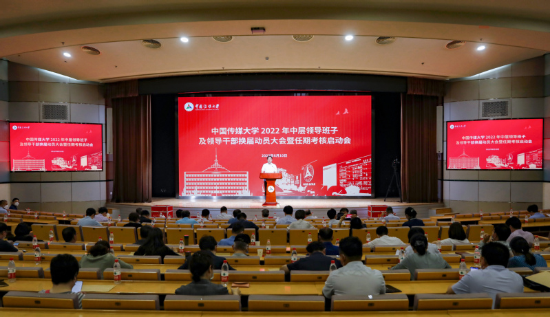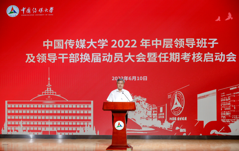 (摄影 王雷亭 申皓文)6月10日上午,中国传媒大学召开2022年中层领导班子及领导干部换届动员大会暨任期考核启动会,党委书记、校长廖祥忠出席会议并作动员讲话。会议以线下主会场和视频分会场的形式进行,学校党委常委、校长助理、全体中层实职正职领导干部在主会场参会,全体中层实职副职领导干部在视频分会场线上参会。会议由党委副书记李众主持。